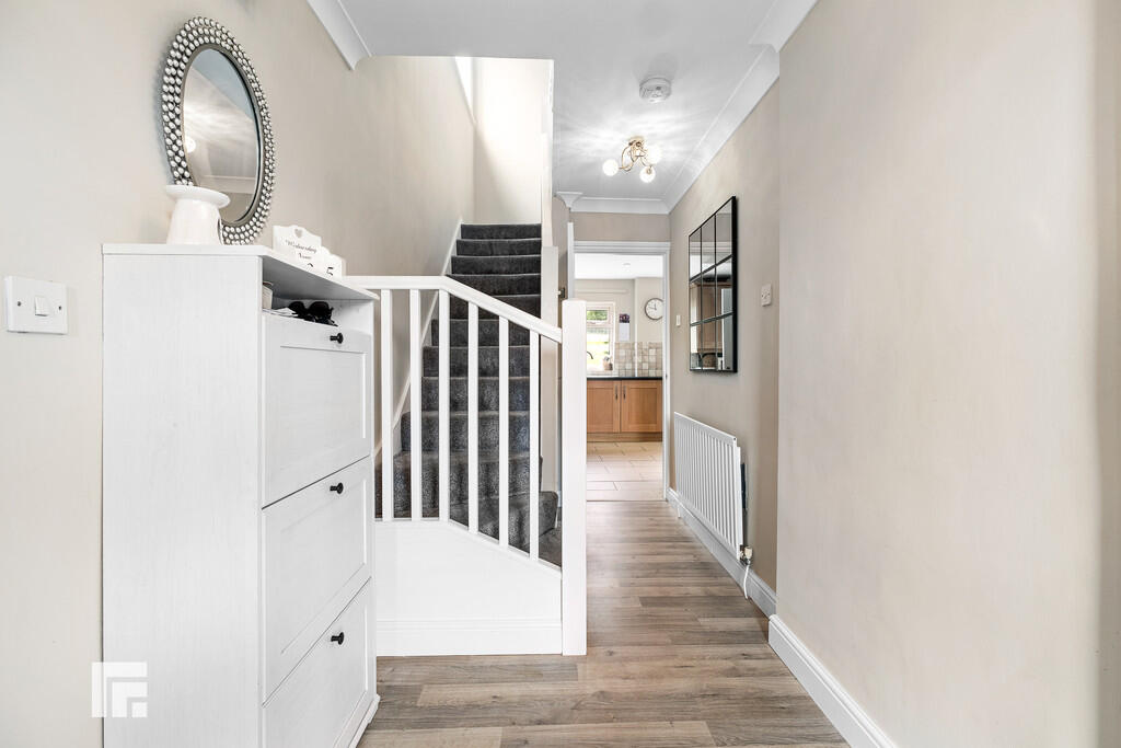 HALLWAY13' 7" x 5' 6" (4.16m x 1.69m) Entered via a uPVC door, quality laminate flooring, radiator. Understairs storage cupboard. Spindled staircase leading to first floor.