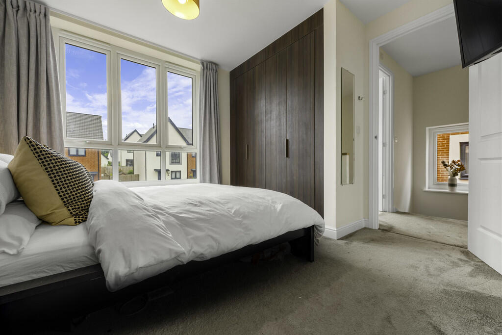 BEDROOMONE10' 10" x 10' 8" (3.32m x 3.26m) A good sized principal bedroom with large picture window to front, built out 'Hammonds' wardrobes with sliding fronts, radiator. Door to ensuite.