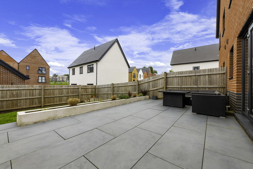 REARGARDEN A good sized landscaped rear garden enclosed by timber lap fencing, paved patio leading, timber gate giving access to side drive. Outside lighting.