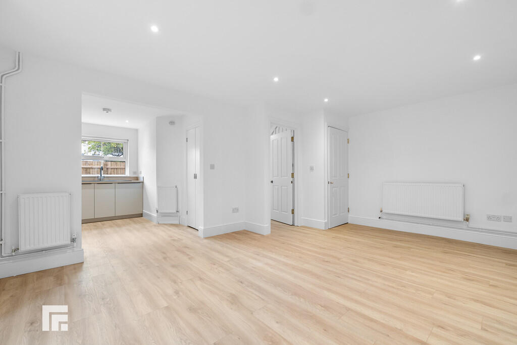 KITCHEN10' 4" x 10' 3" (3.15m x 3.13m) Laminate flooring. Modern fitted kitchen with a range of wall, base and drawer units with worktops over incorporating four ring electric hob with oven beneath and extractor above and 1.5 sink and drainer with mixer tap over. Integrated fridge/freezer. Spotlights. Double glazed uPVC window to front aspect. Pantry. Power points. Radiator.