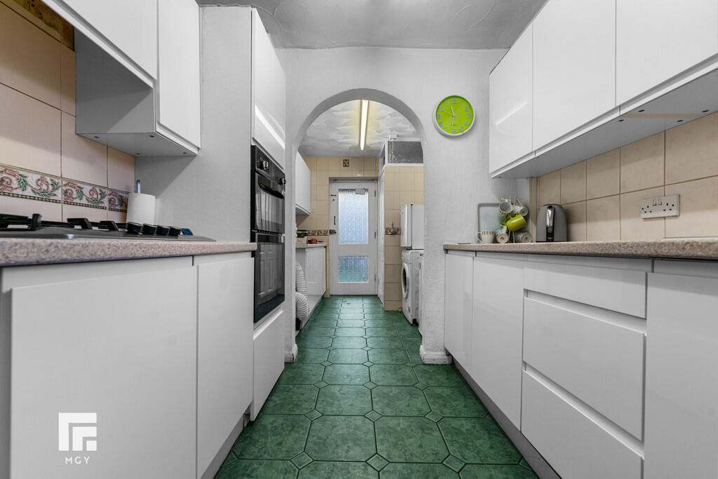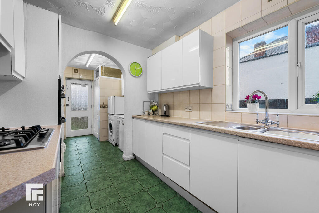 UTILITYROOM8' 2" x 7' 11" (2.506m x 2.424m) PVC window to side aspect. A range of base and wall mounted cabinets with contrasting square edge countertops. Space for white goods. Combi Boiler. Folding door to shower room. Wooden door with obscure glass to rear garden access.