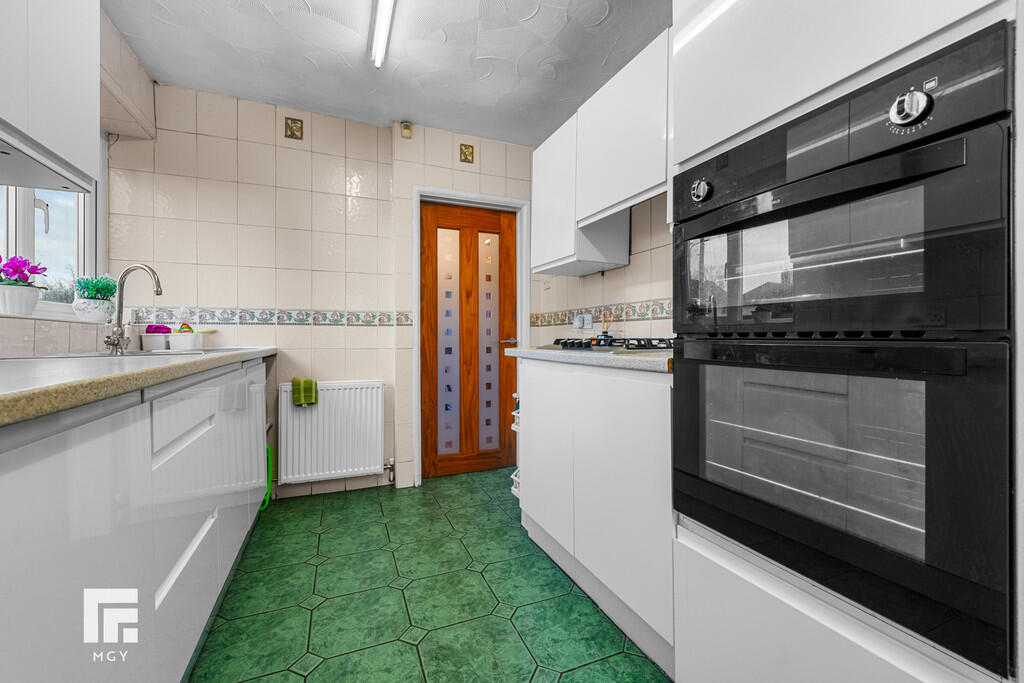 KITCHEN7' 9" x 9' 2" (2.379m x 2.808m) PVC window to side aspect. Radiator. A range of base and wall mounted cabinets with contrasting square countertops incorporating sink unit with mixer tap. Built in oven and grill, four ring gas hob. Tiled walls. Laminate flooring.