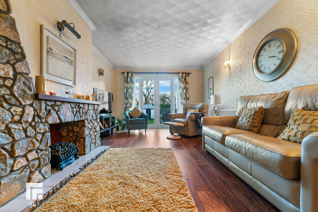 LIVINGROOM20' 10" x 11' 4" (6.357m x 3.467m) PVC Patio doors to rear garden. Two Radiators. Stone clad fireplace. Oak style laminate flooring.