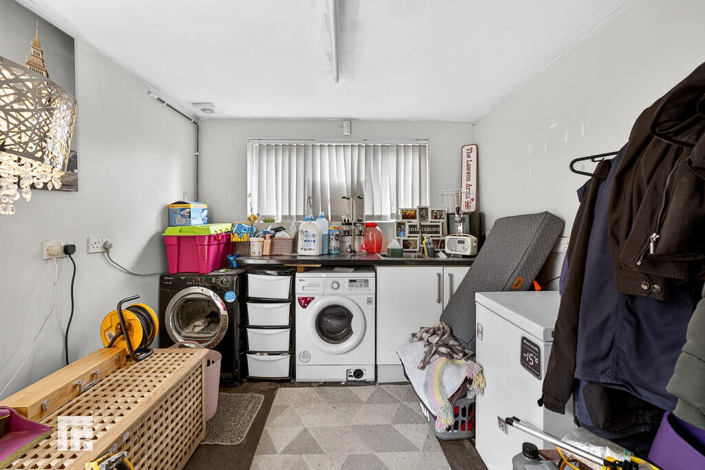 OUTHOUSE19' 0" x 8' 7" (5.81m x 2.63m) Accessed via rear garden. Two double glazed uPVC windows to side/front aspect. Electrics. Plumbing for washing machine. Tiled flooring.