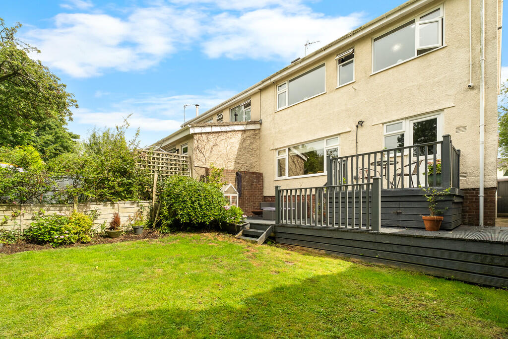 REARGARDEN An idyllic and enclosed South Westerly facing rear garden. Large decked relaxation area leading onto an area of lawn with neat borders of plants and shrubs. Timber storage shed. Gate to side leading to front.