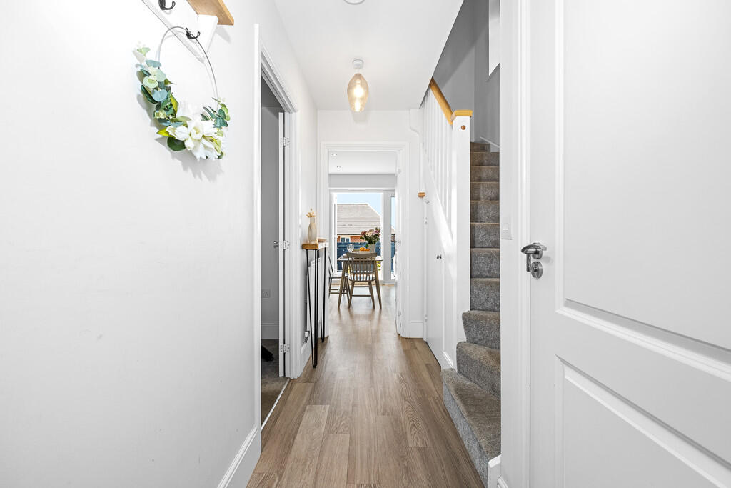 ENTRANCEHALLWAY Approached via a composite entrance door leading to the spacious hallway. Staircase to first floor. Under stairs storage cupboard. Amtico flooring. Radiator.