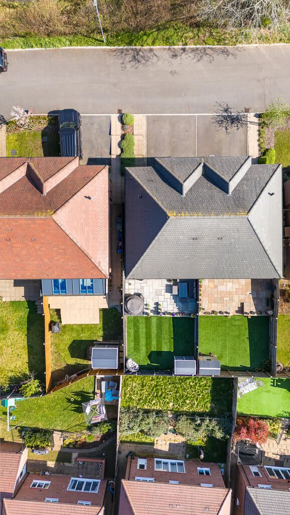 FRONTGARDEN Shrubs to borders. Paved pathway to front door. Two car side by side driveway.