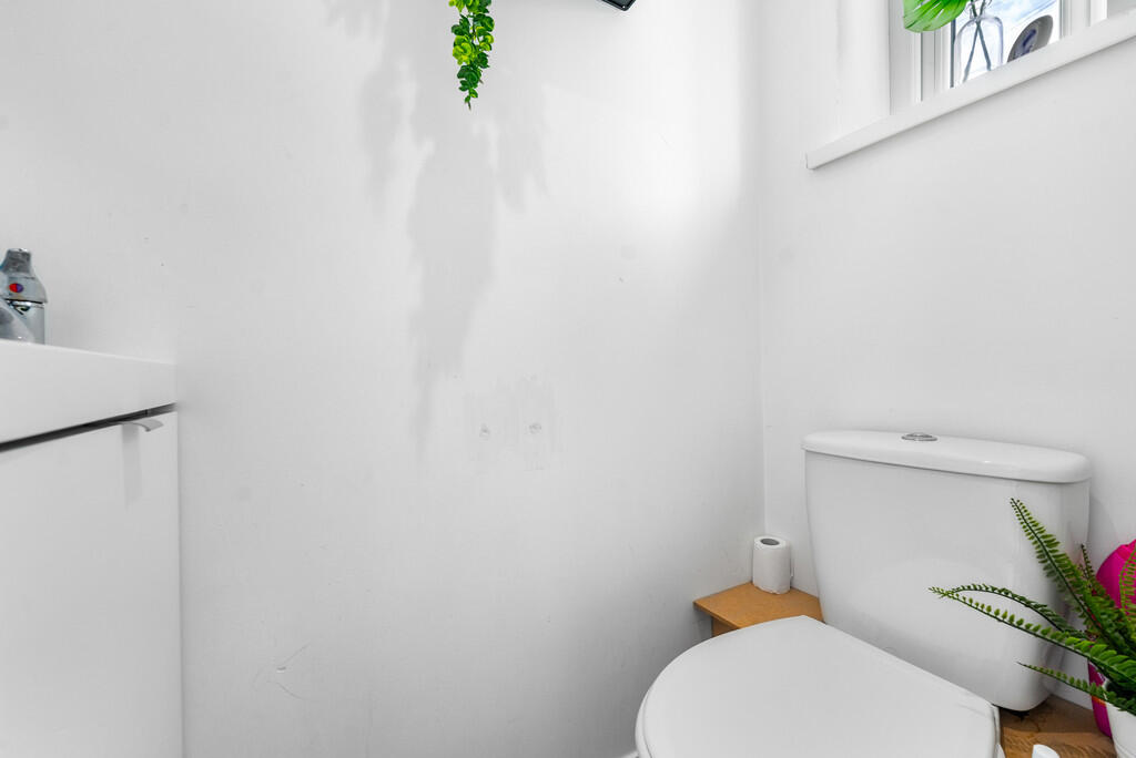 CLOAKROOM4' 5" x 2' 4" (1.37m x 0.72m) White, low level WC and wash hand basin with vanity. Extractor fan. uPVC obscured glass window to front.