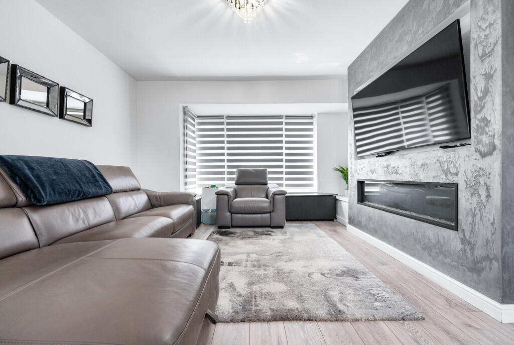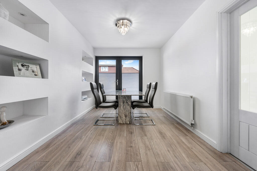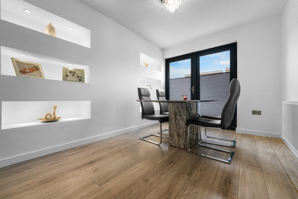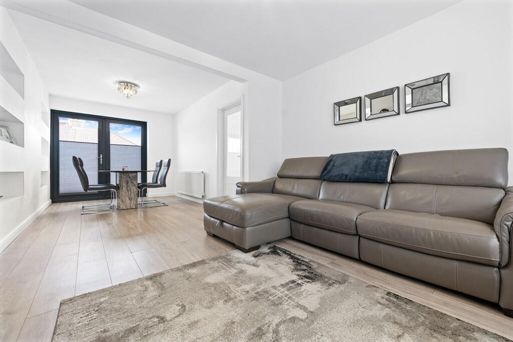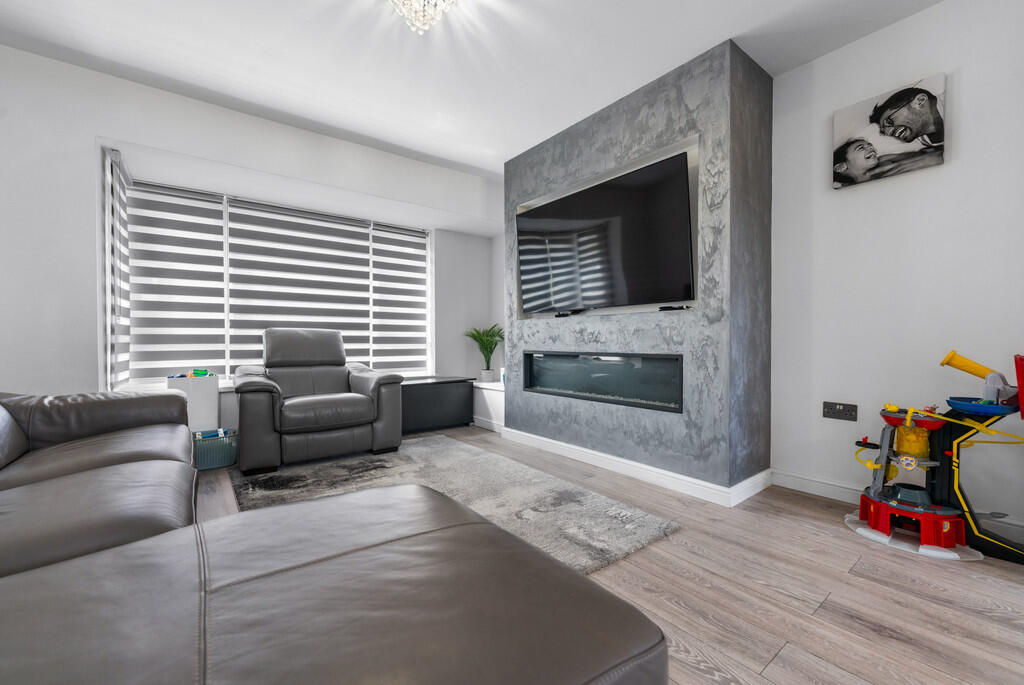 LIVINGROOM/DININGROOM26' 8" x 12' 9" (8.13m x 3.91m) Spacious family living/dining area with media wall and feature electric fire place. Two radiators. Window to front. Large swing and slide doors opening into the rear garden on to a stone patio area.