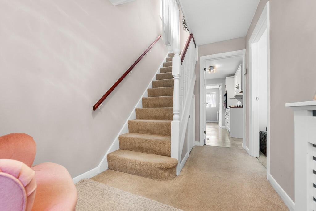 ENTRANCEHALLWAY Approached via a wood panelled entrance door leading to the spacious hallway. Understairs storage. Staircase to first floor. Radiator.