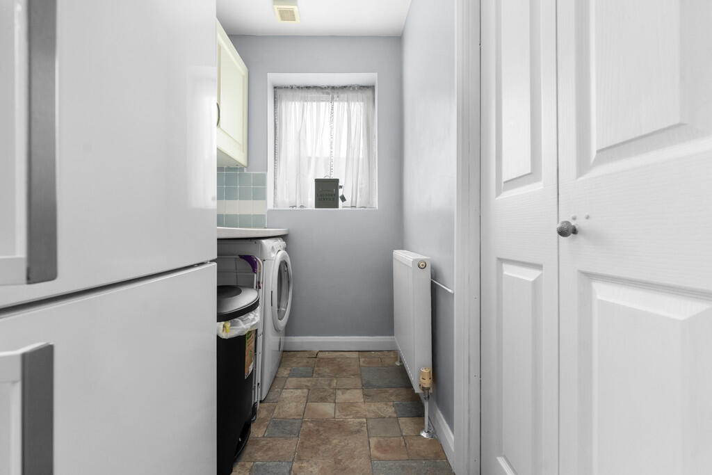 UTILITYROOM9' 1" x 4' 8" (2.79 m x 1.43m) With worktop to one side. Wall units above. Plumbing for washing machine. Space for fridge freezer. Window to rear. Door to side. Door to wet room.