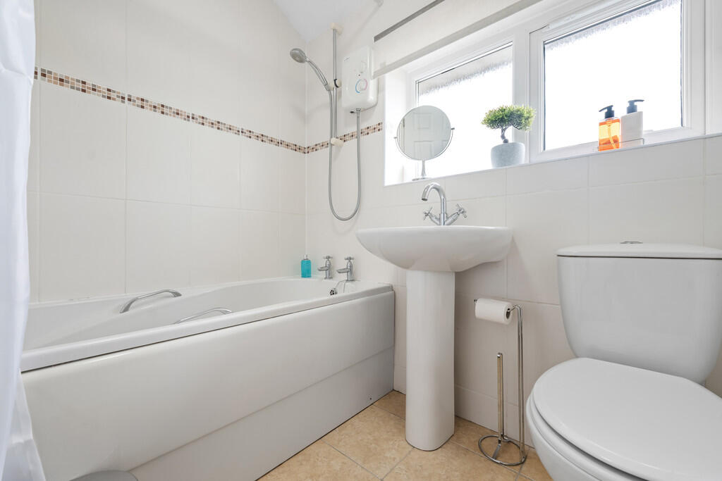 FAMILYBATHROOM6' 4" x 5' 7" (1.95m x 1.71m) Quality white suite comprising low level wc, wash hand basin, panelled path with electric shower above. Full wall tiling. Tiled flooring. Obscured glass window to rear. Radiator.