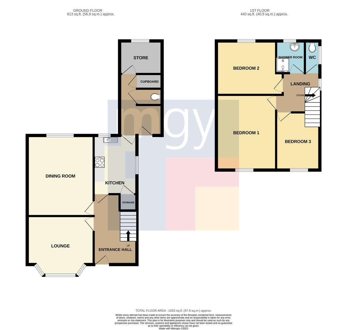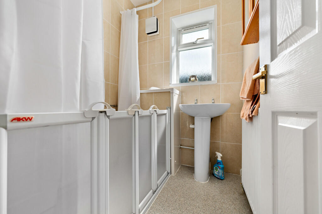 SHOWERROOM5' 8" x 4' 11" (1.75m x 1.51m) Pedestal wash hand basin and mixer shower. Full tiled walls. Extractor fan. Radiator. uPVC double glazed obscure window to rear.