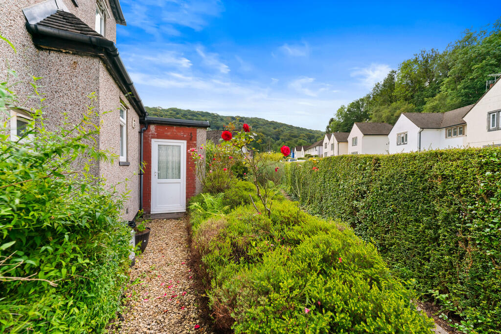 OUTSIDE-REARGARDEN A delightful, south facing rear garden, mainly laid to lawn with stone chip pathway and shrub borders. Paved patio area. Outside tap. Boundary fence and hedging leading round to the side garden which lends itself to a potential parking space (subject to necessary consent).