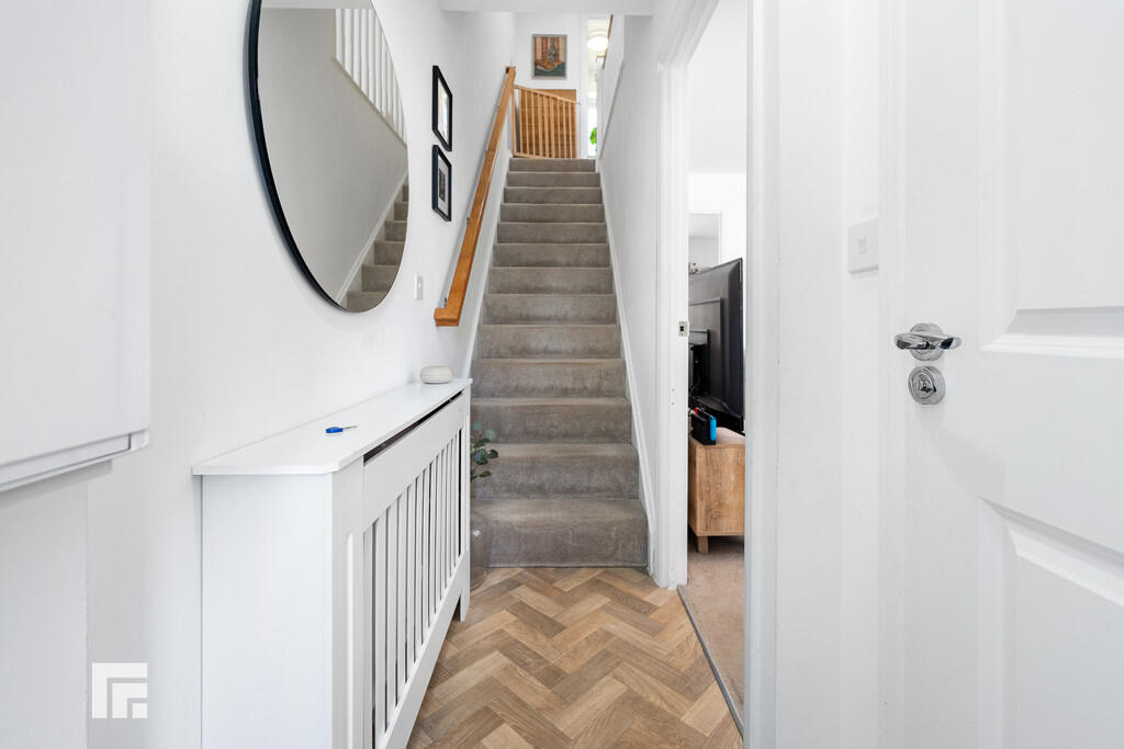 ENTRANCEHALLWAY Entered via a modern, composite door; hallway quality wood effect laminate flooring. Radiator. Stairs with oak hand rail leading to first floor. Doors the living room and WC.
