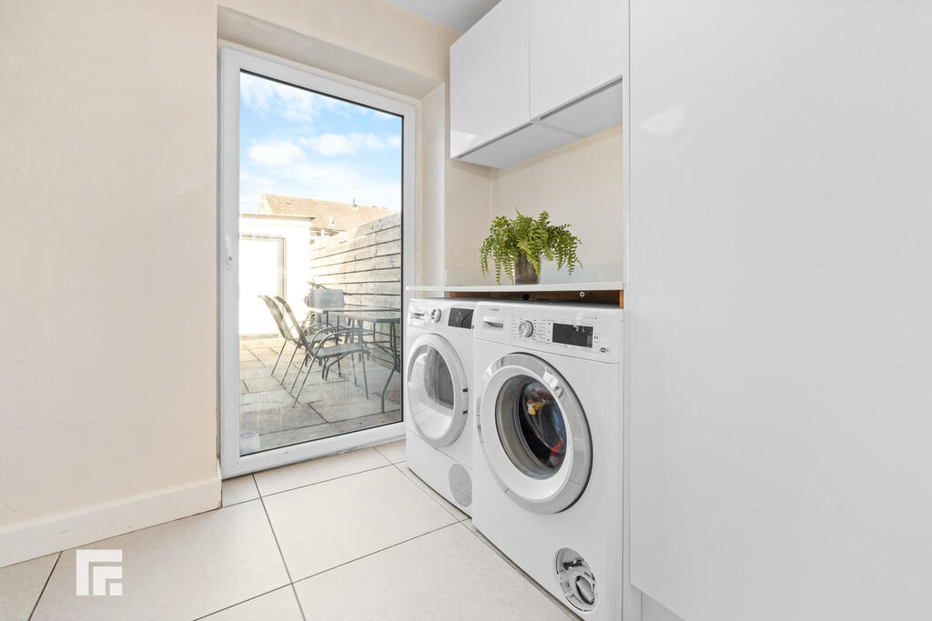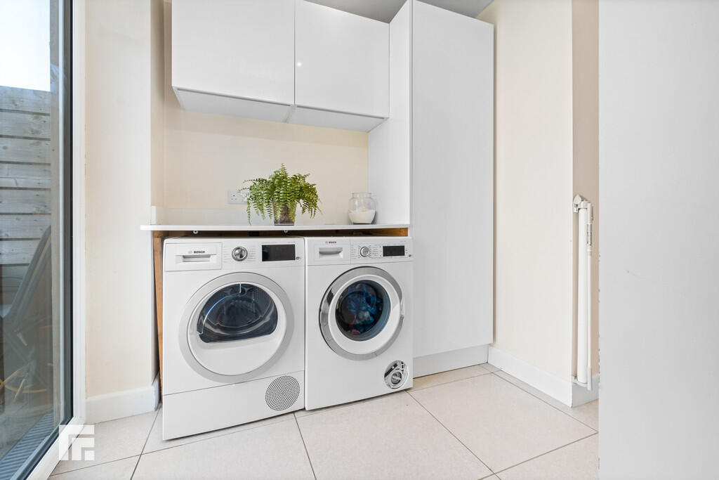 UTILITYROOM6' 3" x 6' 1" (1.93m x 1.87m) With units and quartz worktop to one side. Plumbing for washing machine. Space for tumble dryer. Upvc double glazed door to rear garden. Quality tiled flooring with underfloor heating.