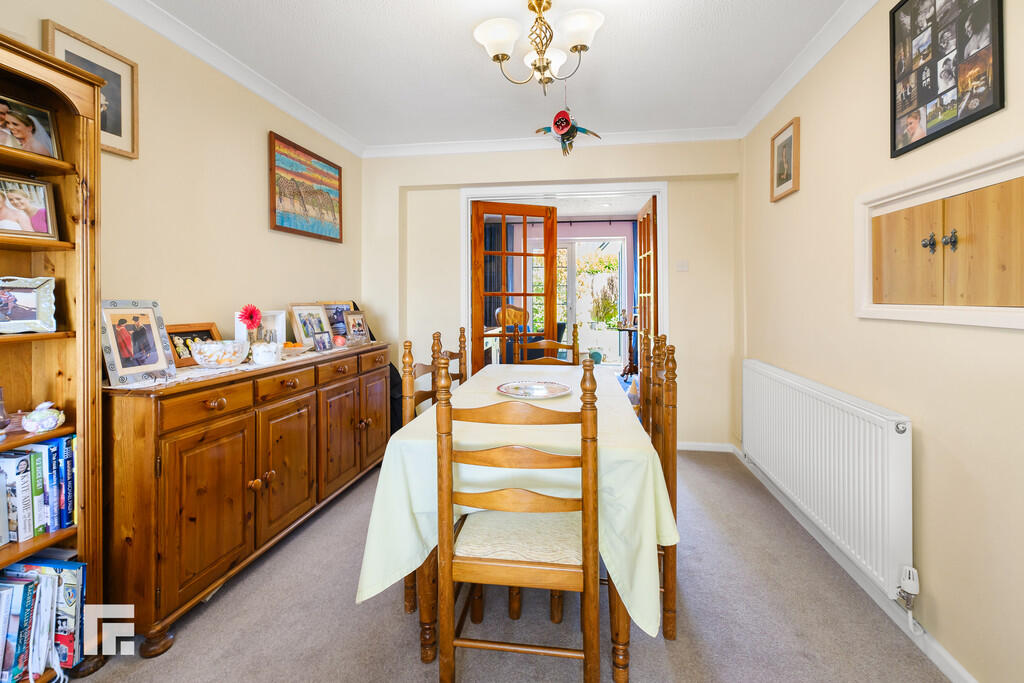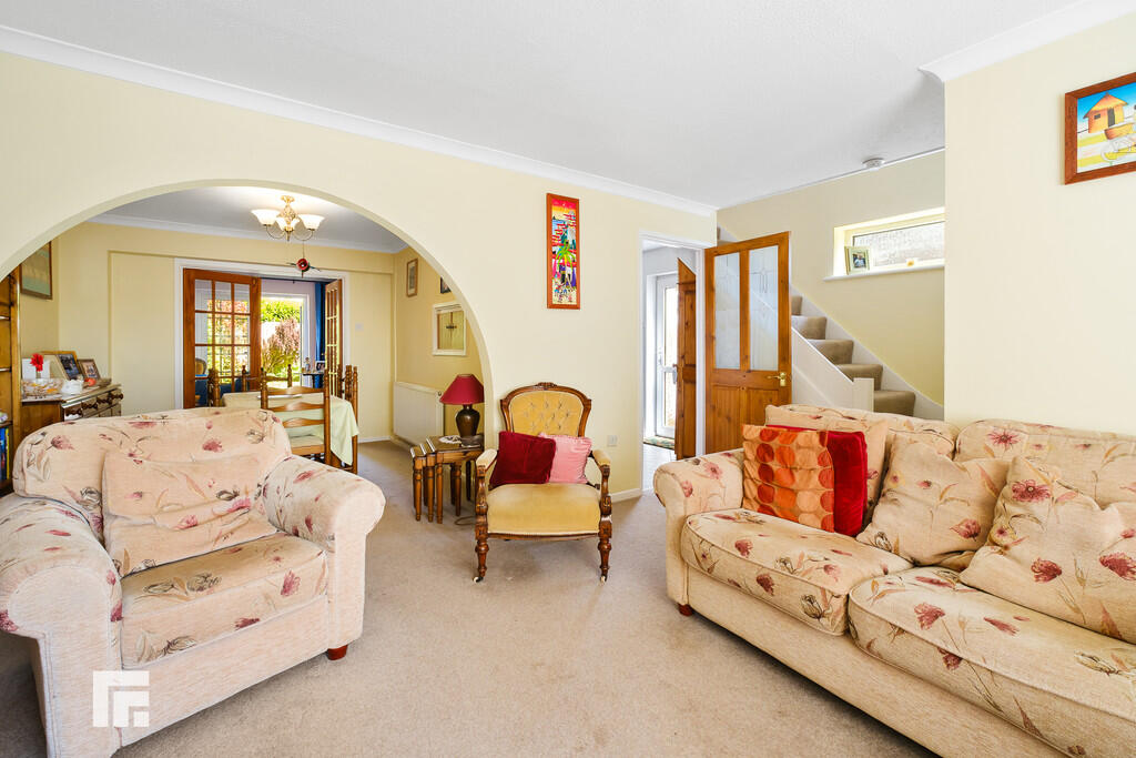 LOUNGE/DININGROOM25' 5" x 9' 5" (7.76m x 2.88m) An open plan lounge/dining room with electric fire, oak mantle piece and marble hearth; archway through to dining area with ample space for dining room table. Two radiators. Wooden door to kitchen. Stairs leading to first floor with under stairs storage cupboard. uPVC window to front and side. Double doors leading into sitting room.