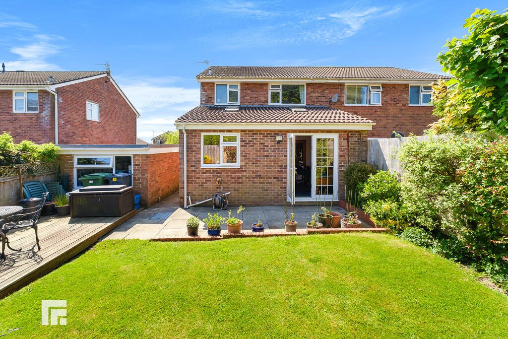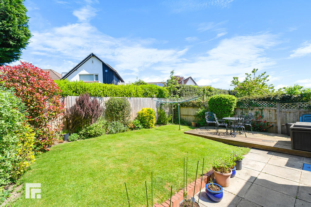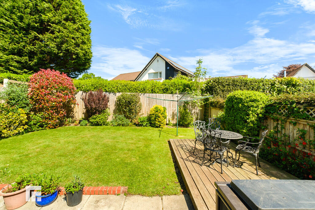 REARGARDEN Bordered by a timber fence and mature shrubs, a beautifully maintained, good sized rear garden. Paved patio leading to an area laid to lawn. Decked seating area and cast iron gate to side for access. Outside tap.