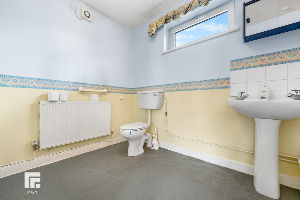 ENSUITESHOWERROOM11' 6" x 6' 7" (3.51m x 2.02m) A sizeable ground floor shower room with walk in shower cubicle, wash hand basin and low level wc. Obscured window to front. Extractor fan. Tiled splashback. Radiator.