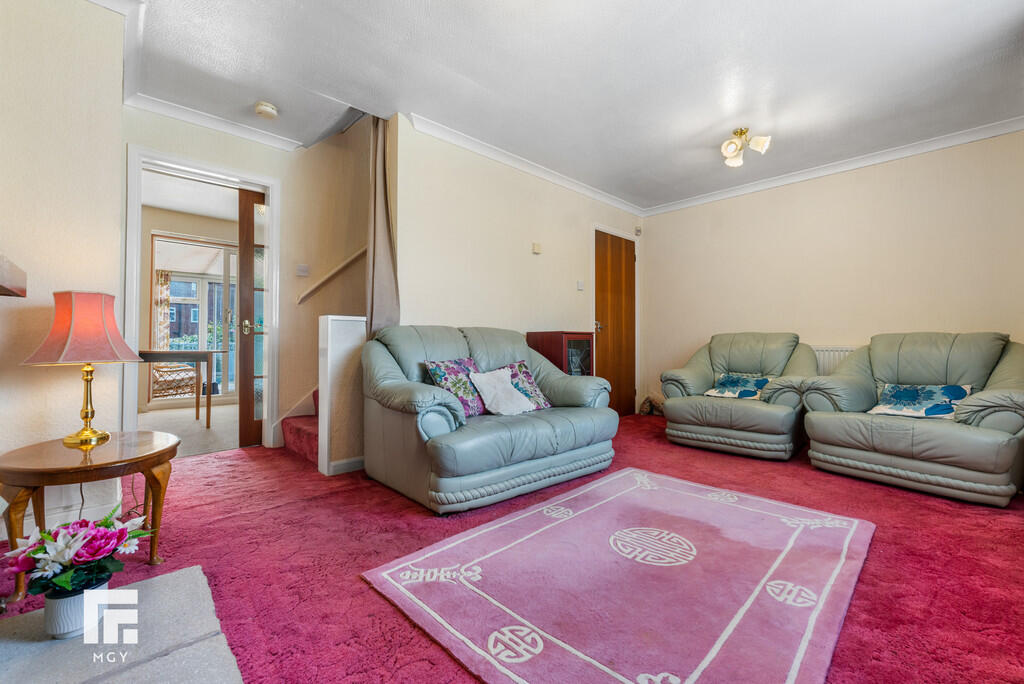 LOUNGE16' 0" x 9' 10" (4.89m x 3.00m) With large window overlooking the lawned front garden, a good sized primary reception. Staircase to first floor. Feature fireplace. Radiator. Sliding door to kitchen and dining room.