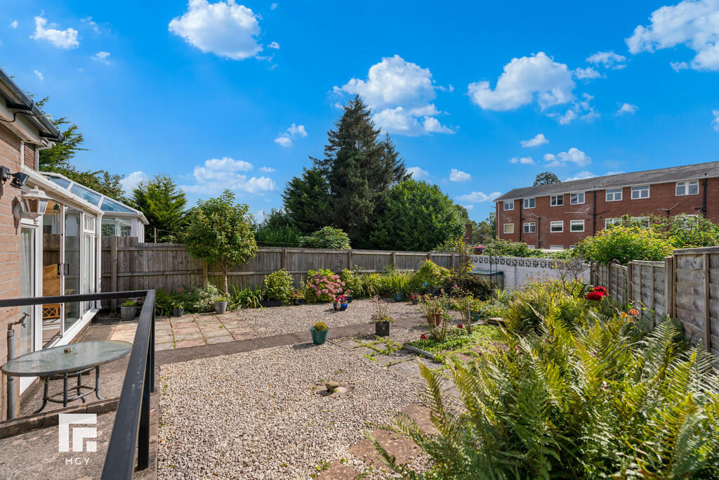 REARGARDEN A sizeable rear garden enjoying a southerly aspect. Comprising paved patio and areas of decorative stones with neat beds of plants and shrubs. Outside light. Outside tap. Side access with gate leading to front.