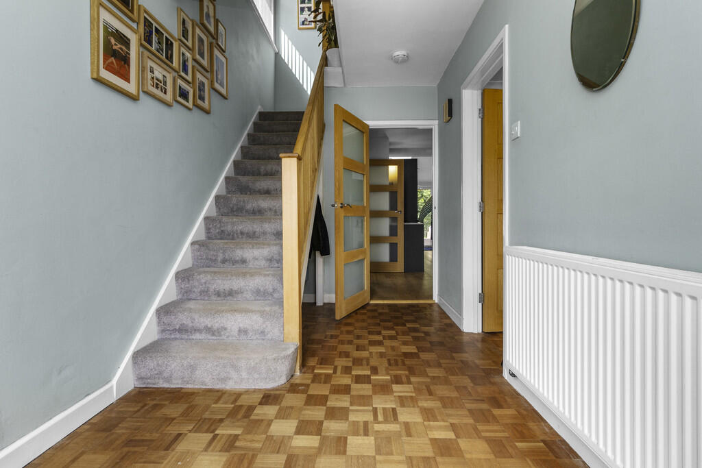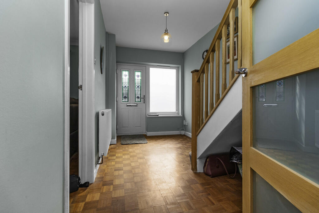 HALLWAY13' 9" x 6' 11" (4.20m x 2.12m) Entered via recently installed double glazed composite front door with matching window to side, into hallway. Parquet wood flooring. Solid oak doors to lounge and kitchen/dining/family room. Radiator. Stairs to first floor with under stair storage space.