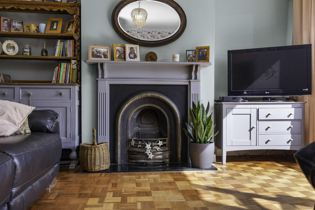 LOUNGE13' 3" x 13' 1" (4.04m x 4.01m) Feature cast iron fireplace with granite hearth. Parquet wood flooring. Column radiator. Solid oak glazed double doors to kitchen/dining/family room.