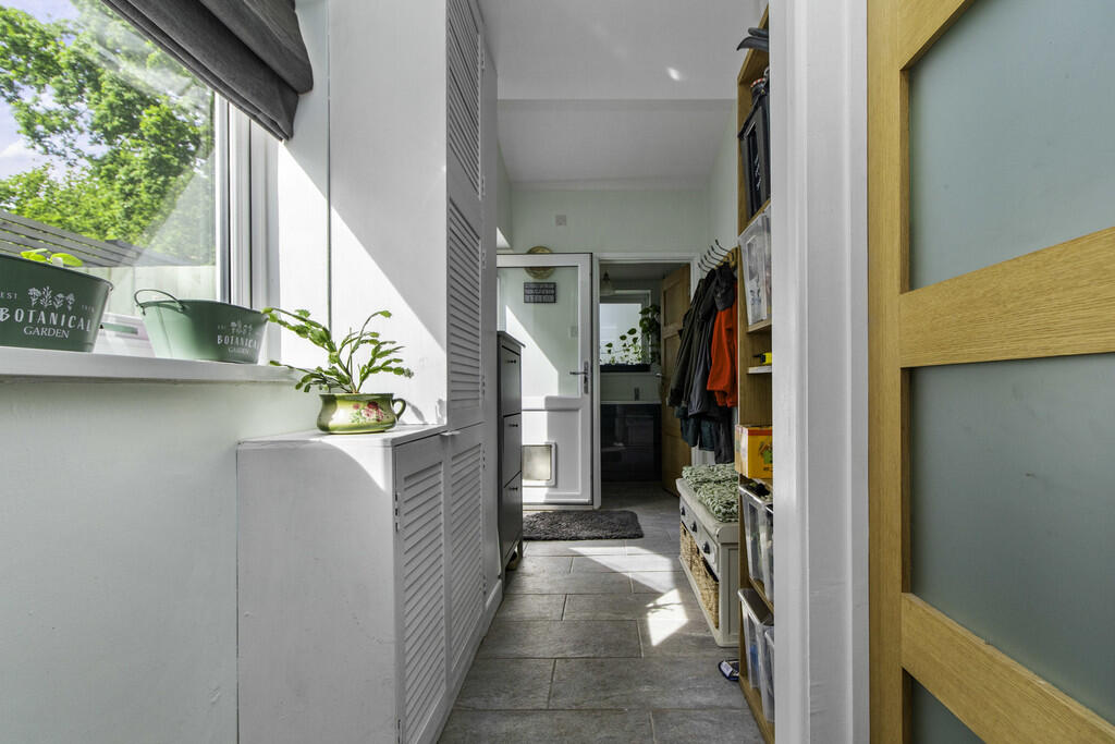 UTILITYROOM18' 4" x 5' 0" (max) (5.59m x 1.54m) A sizeable utility with side access. Plumbing for washing machine. Concealed 'Baxi' combi gas central heating boiler. Door to side. Window to side. Tiled flooring.