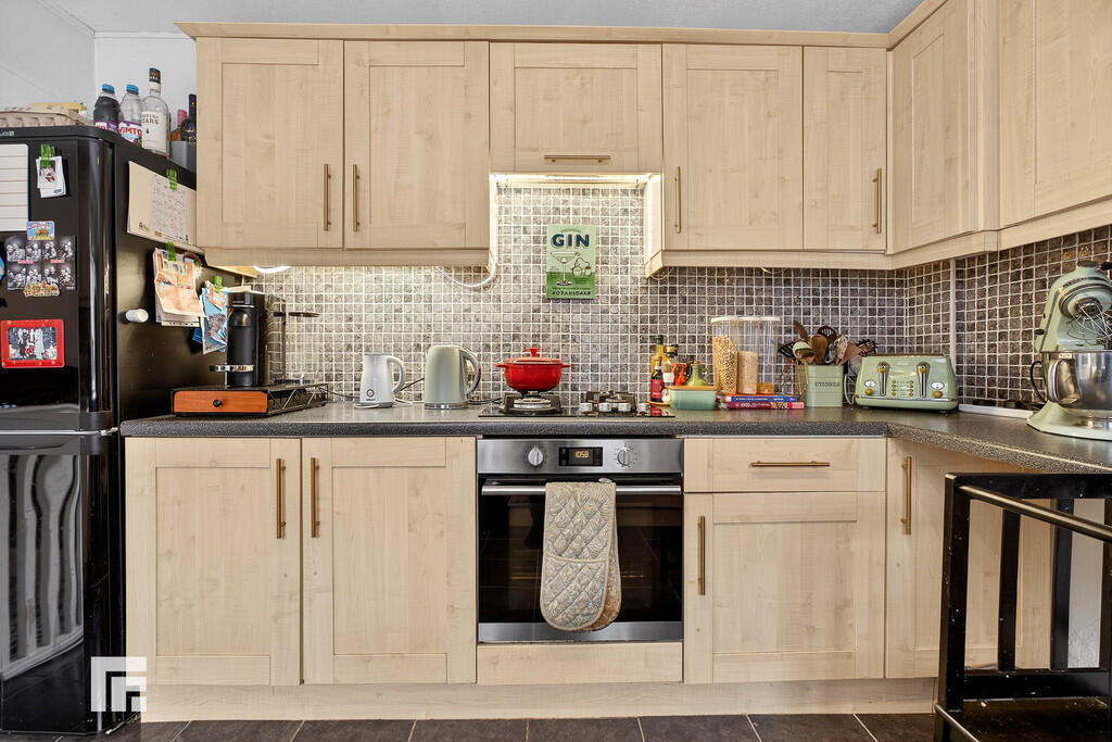 KITCHEN/BREAKFASTROOM12' 5" x 9' 9" (3.80m x 2.98m) The kitchen is fitted with a wide range of base and eye level units incorporating stainless steel sink and drainer with complementary work surfaces. Fitted electric oven with gas hob and extractor fan over. Space for fridge/freezer, dishwasher and washing machine. Tiled flooring a splash backs. Radiator. uPVC double glazed window to side. Door to lobby with tiled flooring and under floor heating. Glazed door to bathroom and external uPVC double glazed to side.