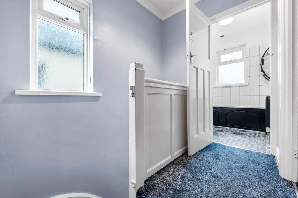 FIRSTFLOOR Carpet to floor. Pendant light fitting. Power points. Obscure window to side aspect. Doors to three bedrooms and bathroom. Loft hatch.