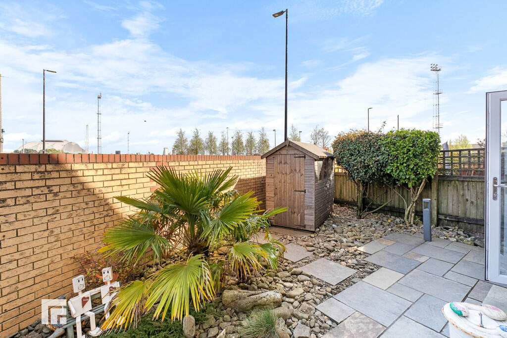 Rear - Low maintenance rear garden. Larger than average with ample sun all day. Patio. Wall border. Bespoke contemporary planters. External lighting and power point. Outside garden tap and shed. Accessed from the kitchen and secure side gate access.