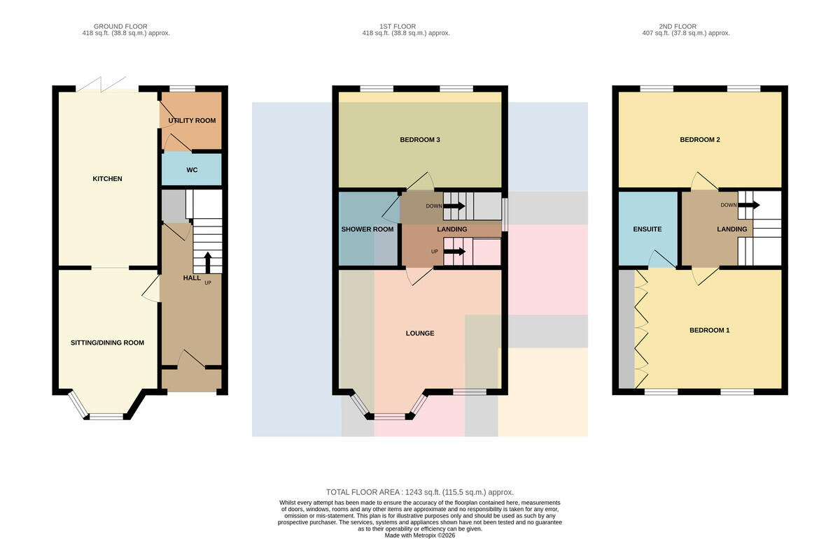 LOUNGE15' 1" x 12' 4" (4.61m x 3.76m) A good sized family lounge. Radiator. uPVC bay window to front. Additional uPVC window to front. Plantation window shutters. Looking out onto green space.
