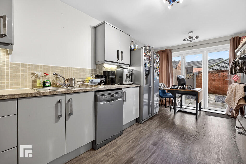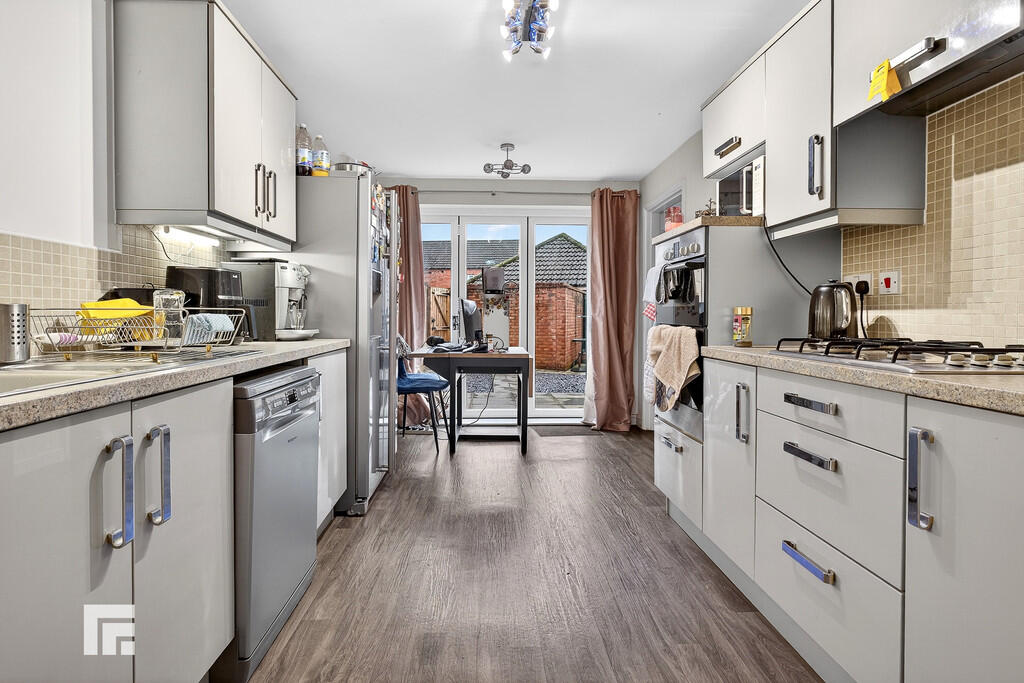 KITCHEN15' 11" x 9' 1" (4.87m x 2.78m) Appointed along two sides, modern high and low level cupboards beneath quality laminate worktops. Stainless steel 1.5 bowl sink with chrome mixer tap and side drainer, integrated four ring gas hob, integrated oven and grill, space for dishwasher and space for American fridge freezer. Tiled splashbacks. 'LVT' flooring. Bi-folding doors to rear. Door through to utility.