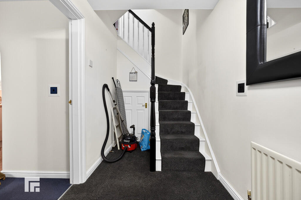 ENTRANCEHALLWAY Entered via a modern composite door, a good sized hallway. Built in under stairs storage cupboard. Radiator. Half turning staircase with painted wooden spindles and runner leading to first floor. Door to dining room.