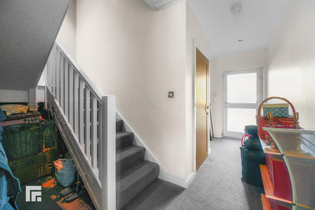 ENTRANCEHALL Entered via double glazed uPVC door with obscure glass. Spacious entrance hall. Laminate flooring. Radiator. Double glazed obscure door leading out to rear. Door leading to garage. Under stairs storage space. Spotlights. Carpeted stairs rising to first floor.