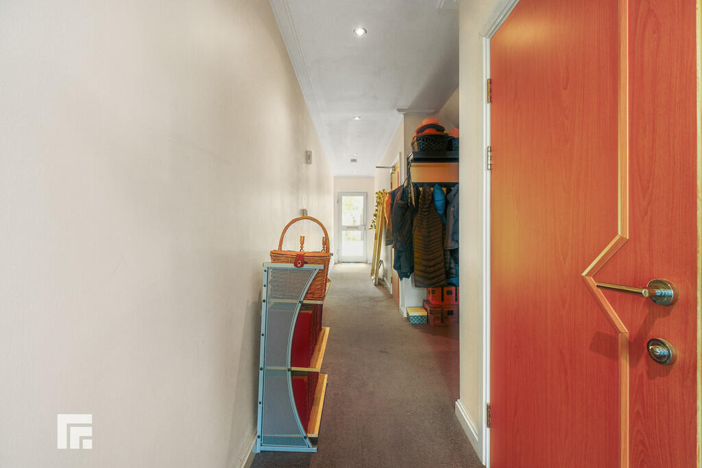 SECONDFLOOR Wall mounted video entry system. Carpet to floor. Radiator. Spotlights. Doors leading to bathroom and two bedrooms.