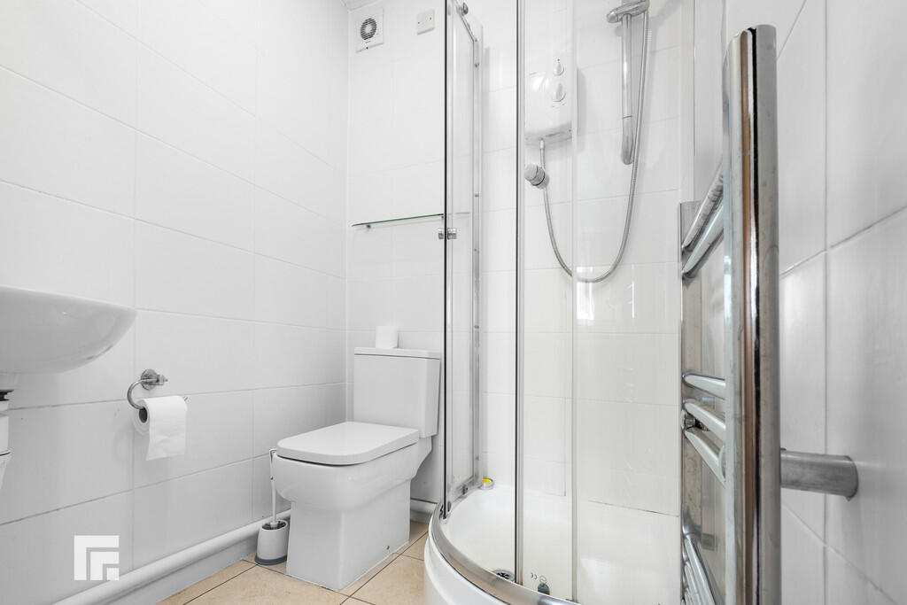 ENSUITE4' 8" x 4' 9" (1.43m x 1.45m) Tiled walls and flooring. Walk in shower cubicle with electric shower. WC. Wall mounted wash hand basin with mixer tap over. Chrome heated towel rail. Pendant light fitting. Extractor fan.