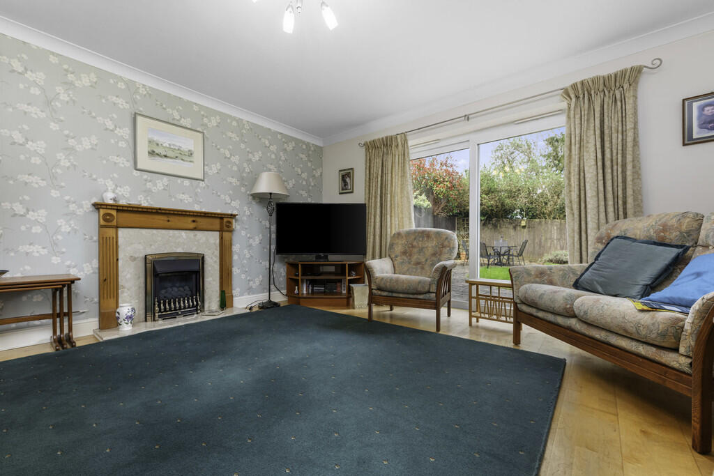 LOUNGE15' 8" x 14' 4" (4.80m x 4.37m) uPVC window to side. Sliding doors to rear garden. Gas effect fire with wooden surround. Radiator.