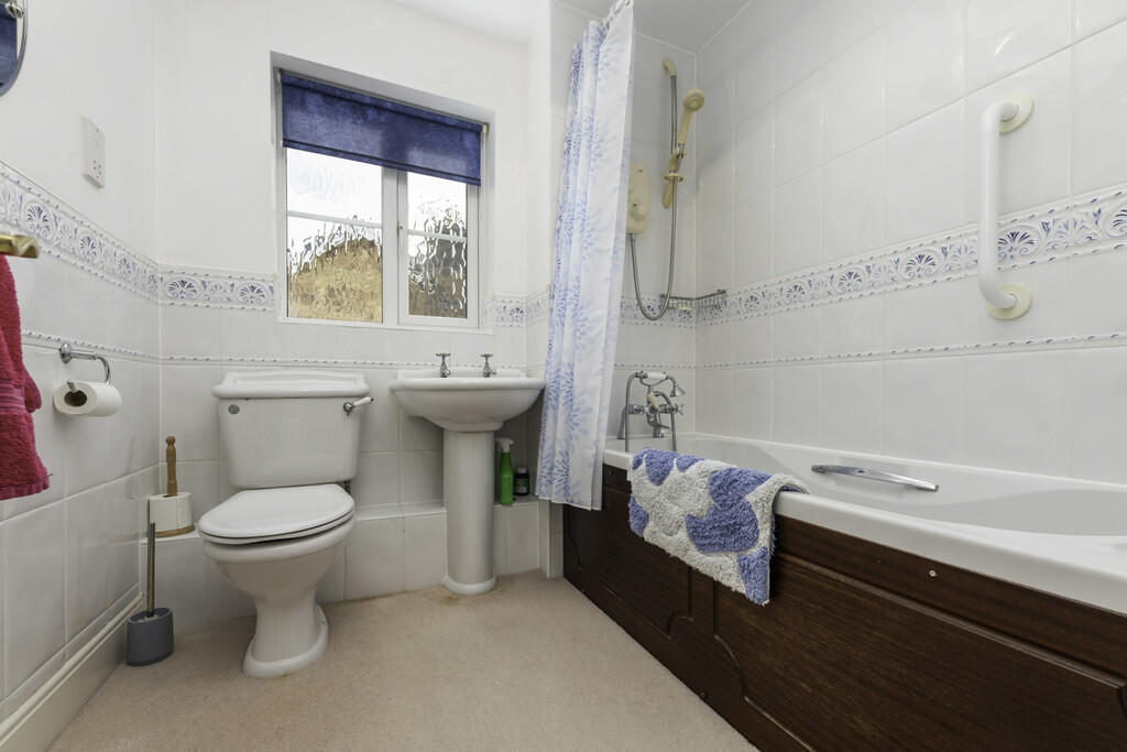 BEDROOMFOUR8' 11" x 8' 5" (2.73m x 2.59m) Original bathroom with power shower over, low level wc, wash hand basin with storage below . Wall tiling to splash back areas. Obscured glass window to side. Chrome heated towel rail. Recessed spot lights.