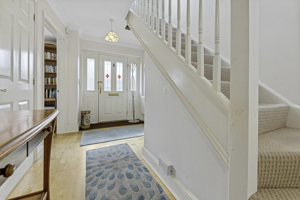 ENTRANCEHALLWAY Approached via a double glazed entrance door with windows to either side. Under stairs storage cupboard. Radiator. wood flooring.