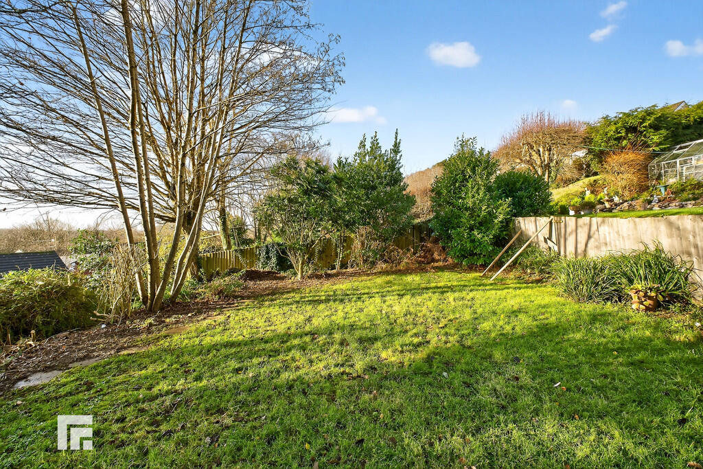 REARGARDEN A delightful west facing rear garden comprising paved patio leading onto a large area of lawn. Variety of inset shrubs and maturing trees.