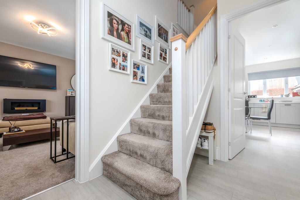 ENTRANCEHALLWAY Approached via a composite front door with window to side of front door leading to the entrance hallway, staircase to first floor, understairs storage recess, luxury vinyl tiled flooring and radiator.