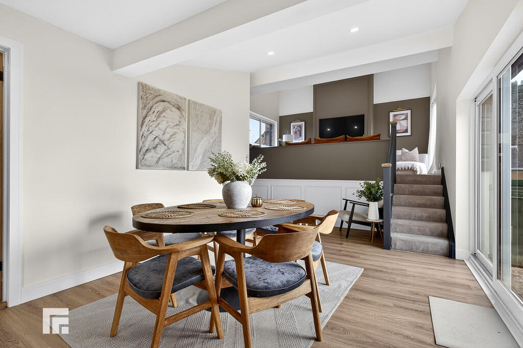 DININGROOM18' 8" x 10' 6" (5.70m x 3.21m) uPVC double glazed sliding doors to rear garden, with elevated views. Laminate wood flooring. Doors to kitchen and inner hallway. Steps up to mezzanine lounge. Radiator. Spotlights.