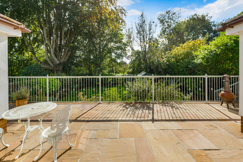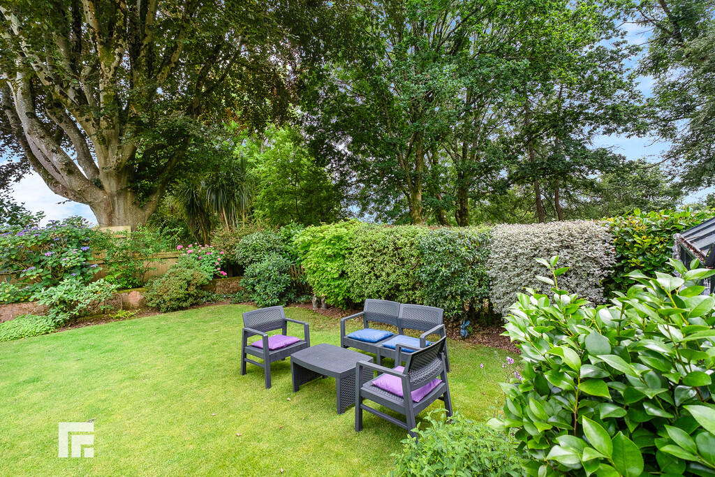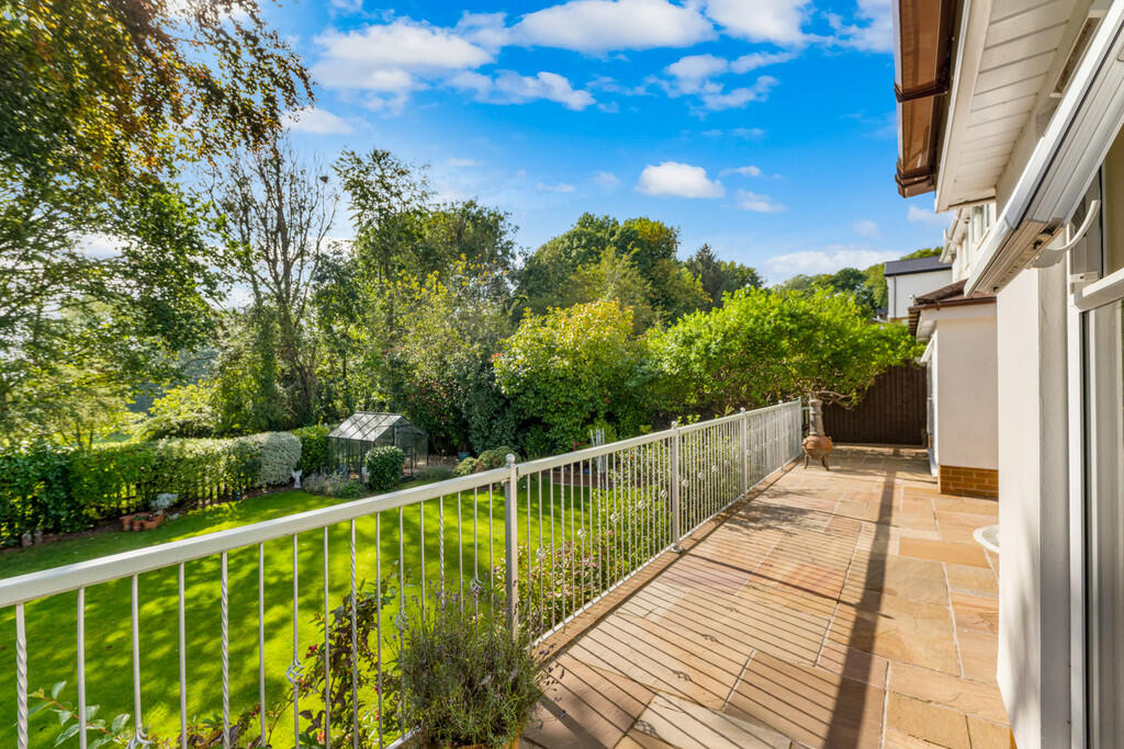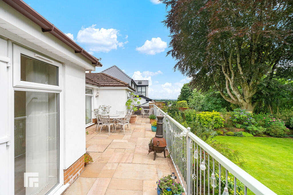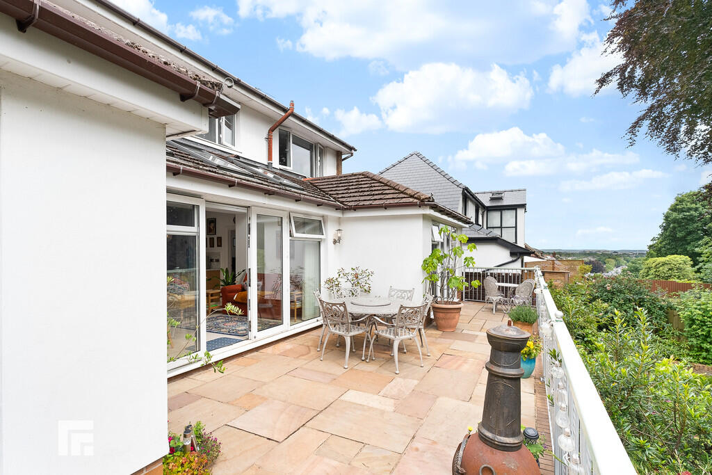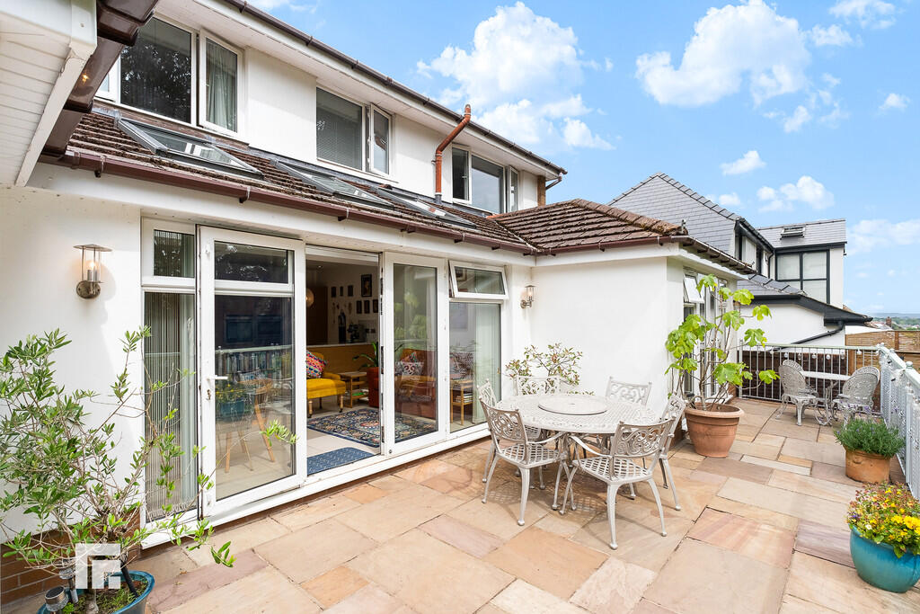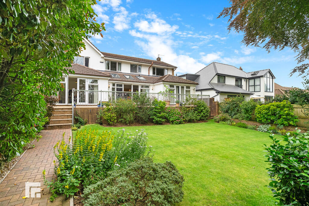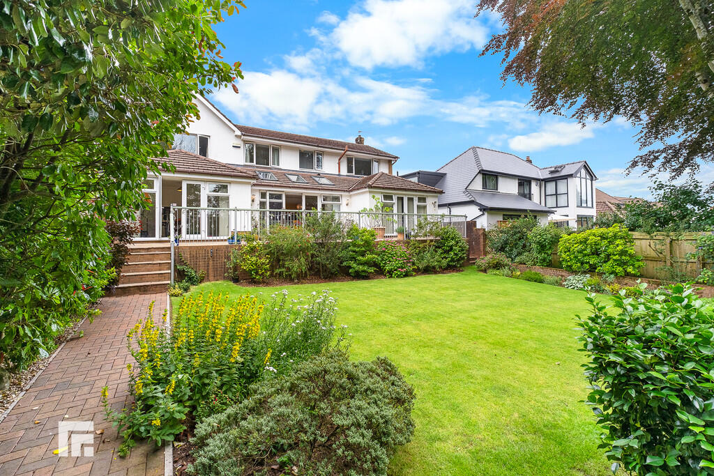 Rear- Fabulous South facing rear garden backing onto Whitchurch Golf Course. Lovely paved patio and large lawned area with well stocked borders. Side access to front and with side access to garage.
