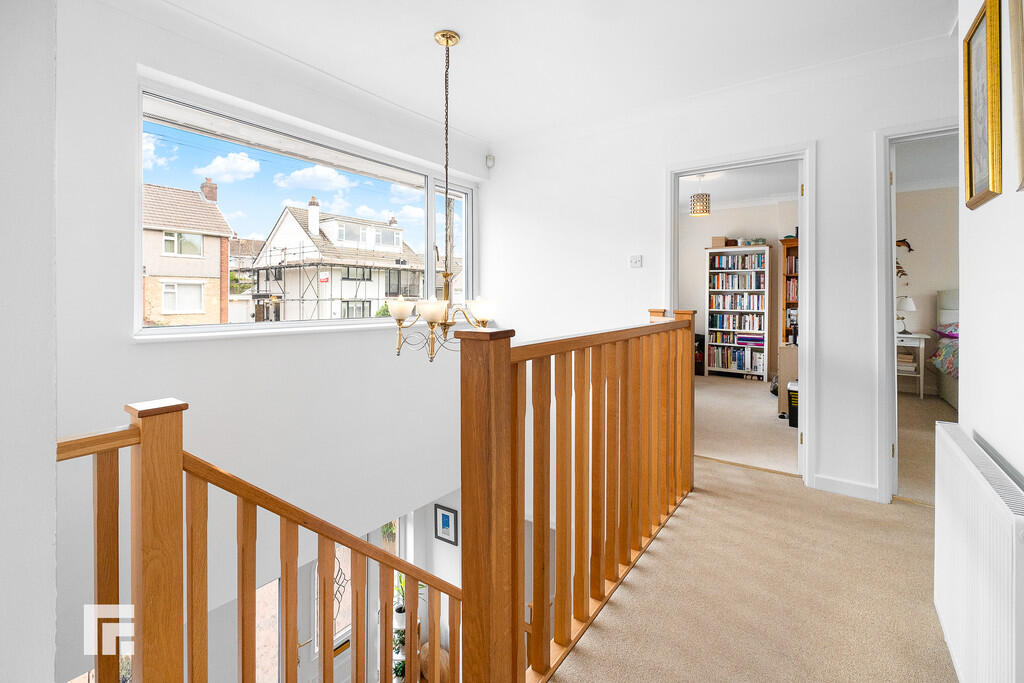 STAIRS&LANDING Galleried landing with bespoke Oak balustrade. Large double glazed uPVC window to front. Coved ceiling. Radiator.
