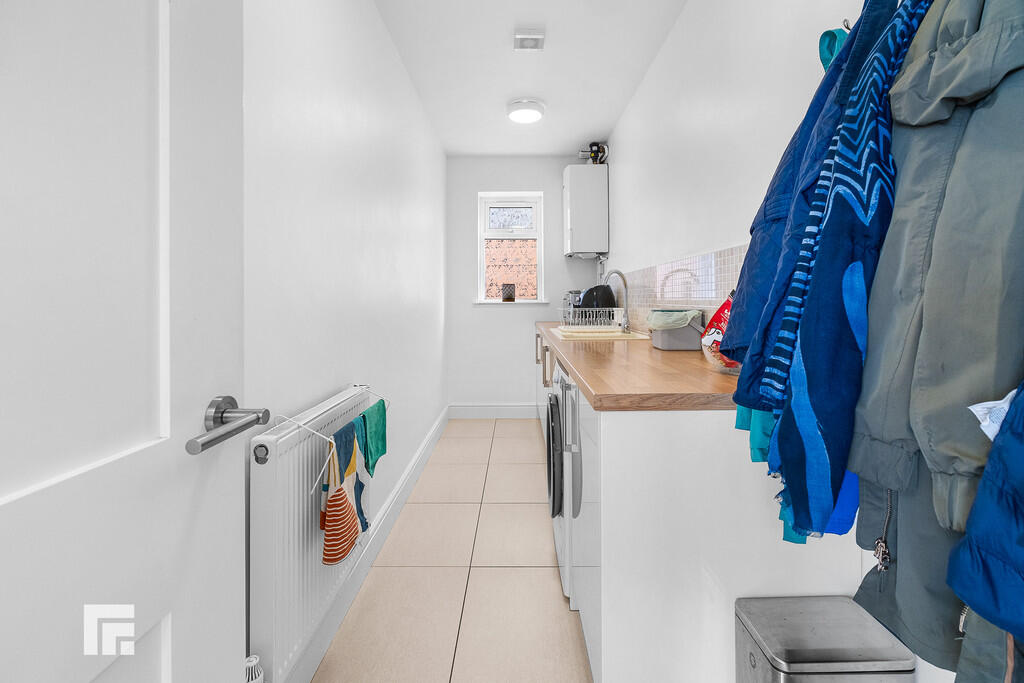 UTILITYROOM14' 3" x 4' 7" (4.35m x 1.42m) Obscured double glazed uPVC window to side. Tiled floor. Base units with work surfaces incorporating sink unit with mixer tap. Wall mounted Worcester combi boiler. Plumbing and space for washing machine.