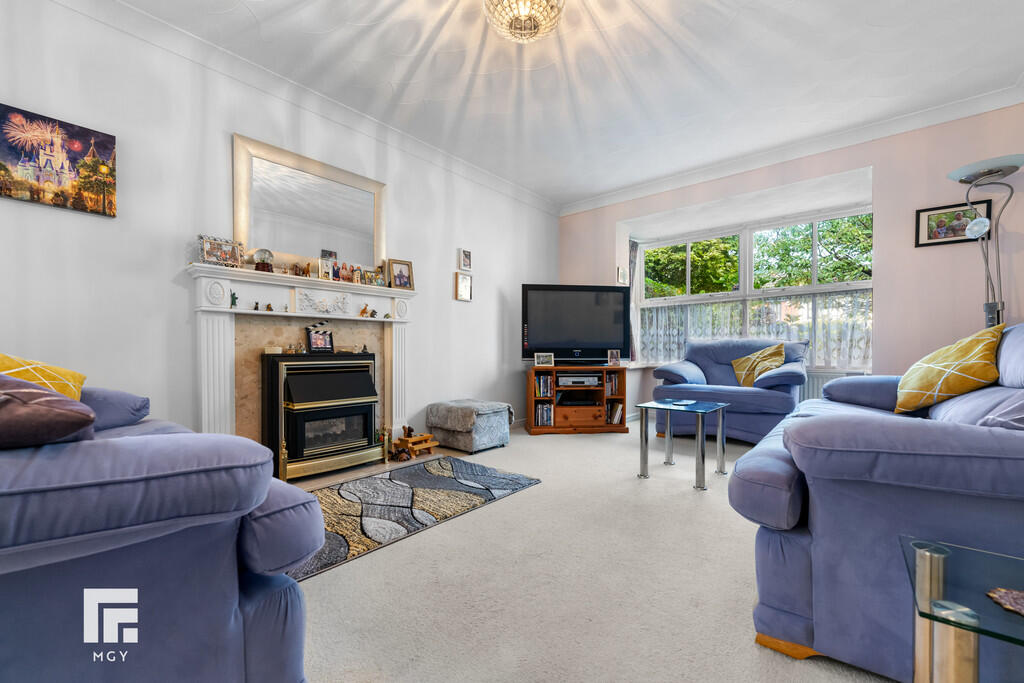 LOUNGE18' 0" x 10' 9" (5.5m x 3.3m) Double glazed bay window to front, a spacious, family lounge. Fireplace with gas fire, marble hearth and white, wooden surround and mantle. Additional wooden, double glazed window to side. Radiator. Double doors to hallway. Archway leading through to dining room.