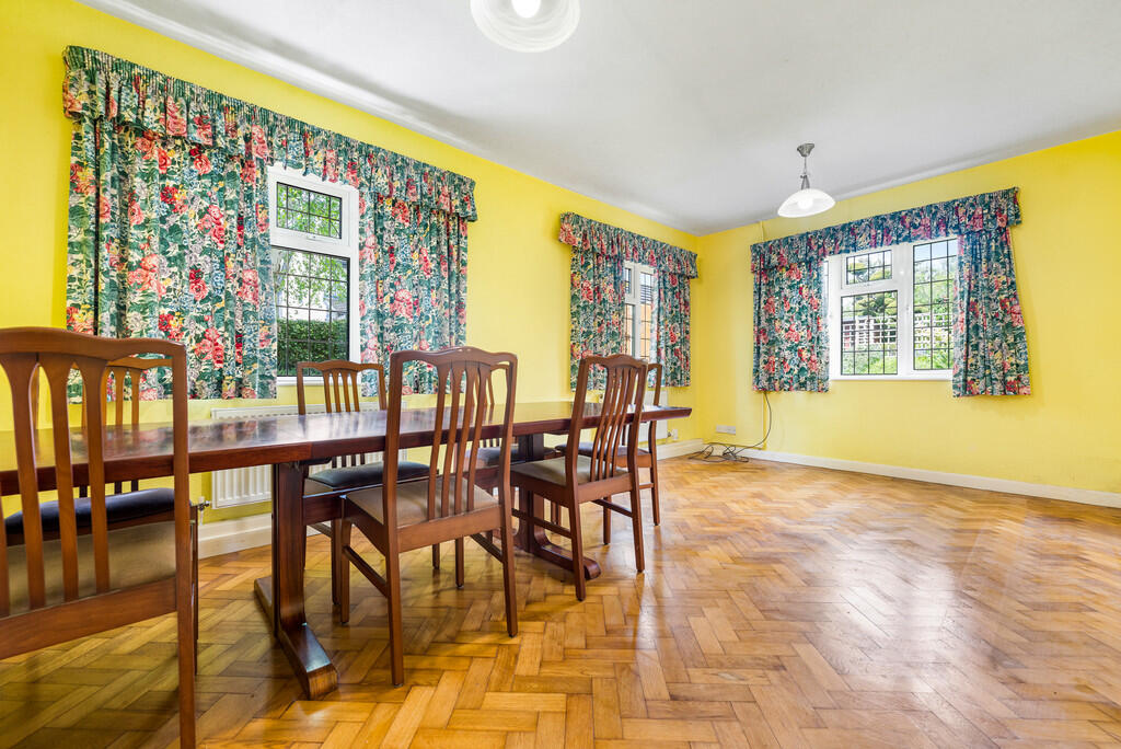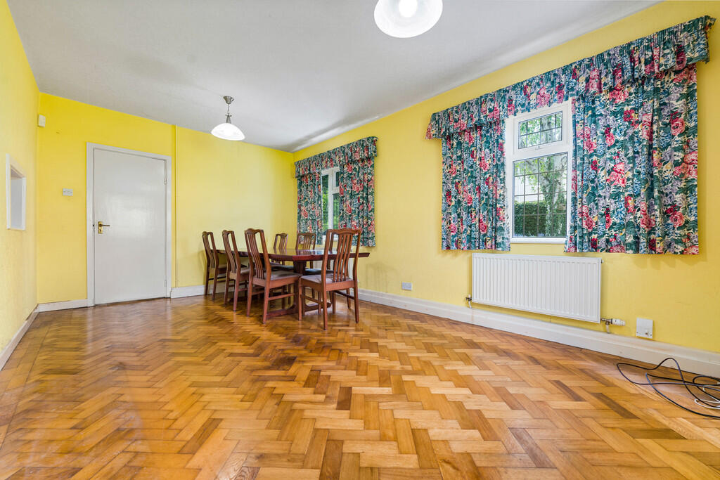 DININGROOM17' 0" x 10' 7" (5.192m x 3.242m) Three uPVC double glazed windows to side and rear. Two radiators. Original parquet flooring. Serving hatch to kitchen.