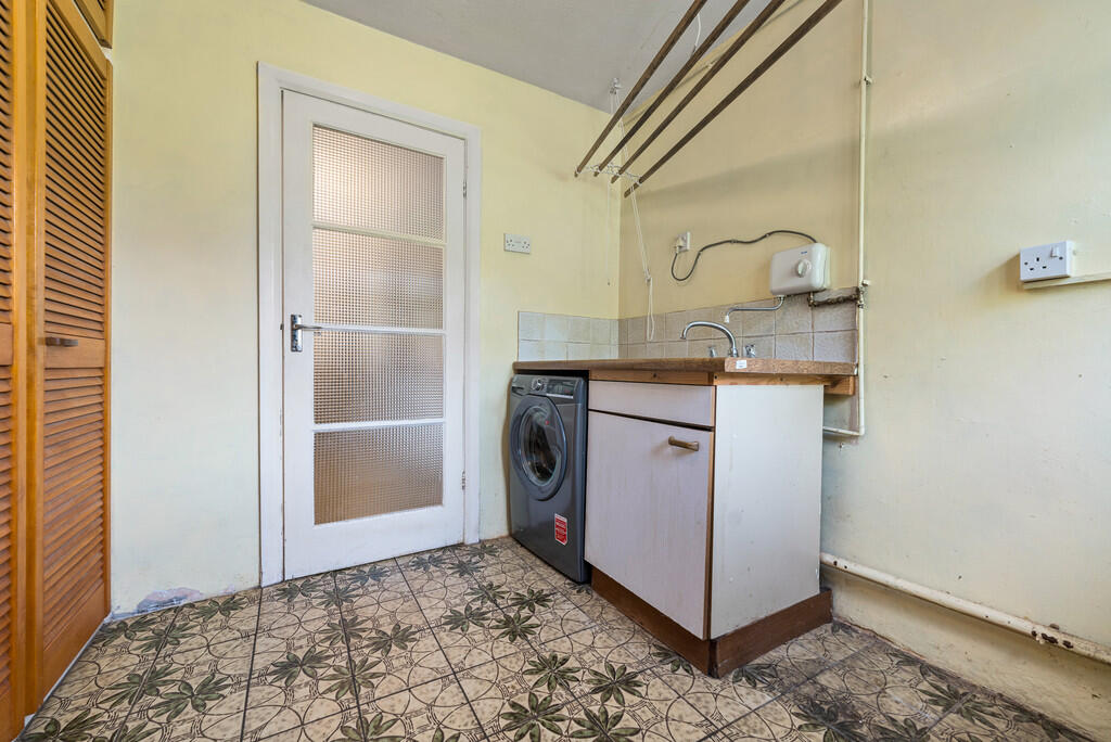 UTILITYROOM7' 3" x 6' 10" (2.210m x 2.088m) uPVC double glazed window to rear, plus uPVC door to rear garden. Base unit incorporating stainless steel sink unit with drainer and mixer tap. Space for washing machine. Additional storage cupboards. Tiled floor.