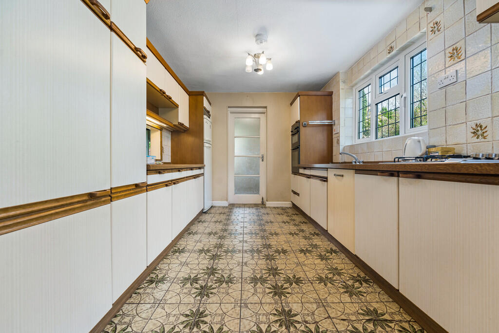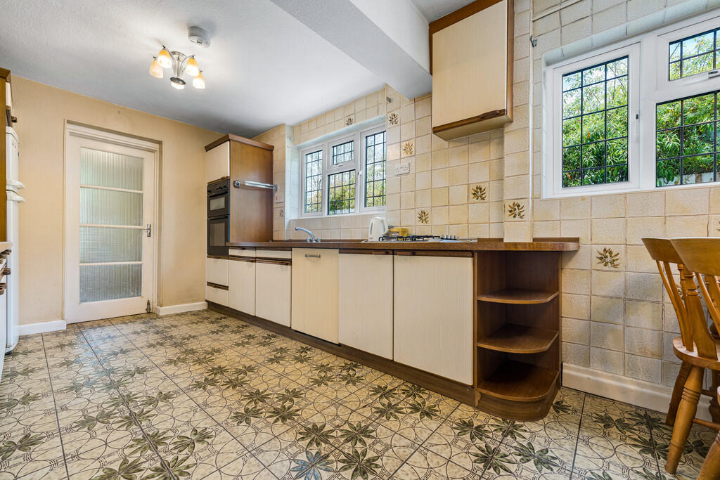 KITCHEN/BREAKFASTROOM18' 2" (max) x 9' 0" (max) (5.560m x 2.746m) Two uPVC double glazed windows to side. A range of fitted base and eye level units incorporating stainless steel sink unit with drainer and mixer tap and complementary work surfaces. Serving hatch to dining room. Fitted electric double oven and gas hob. Space for fridge/freezer. Integrated dishwasher. Radiator. Space for table and chairs. Doors to utility room.
